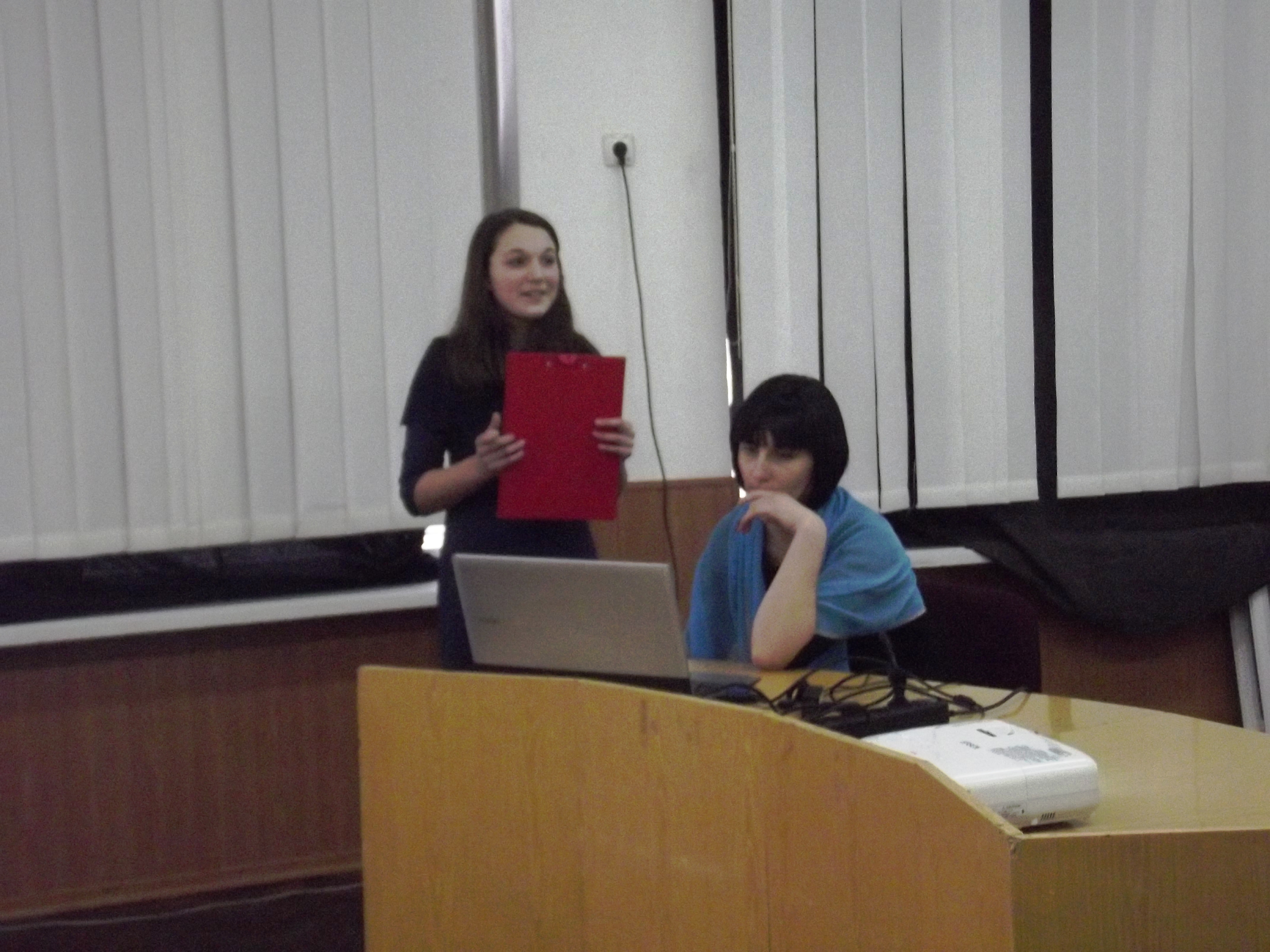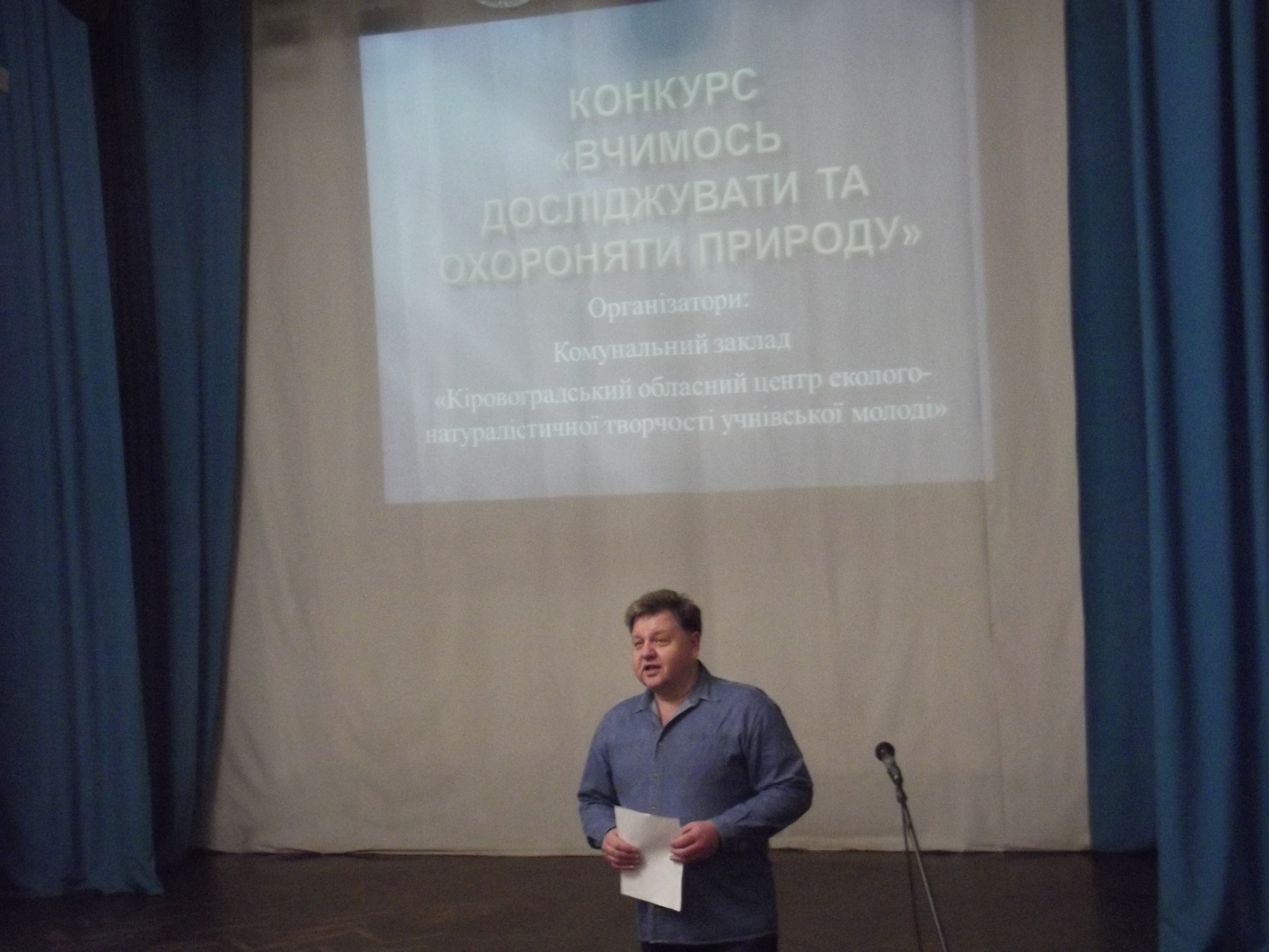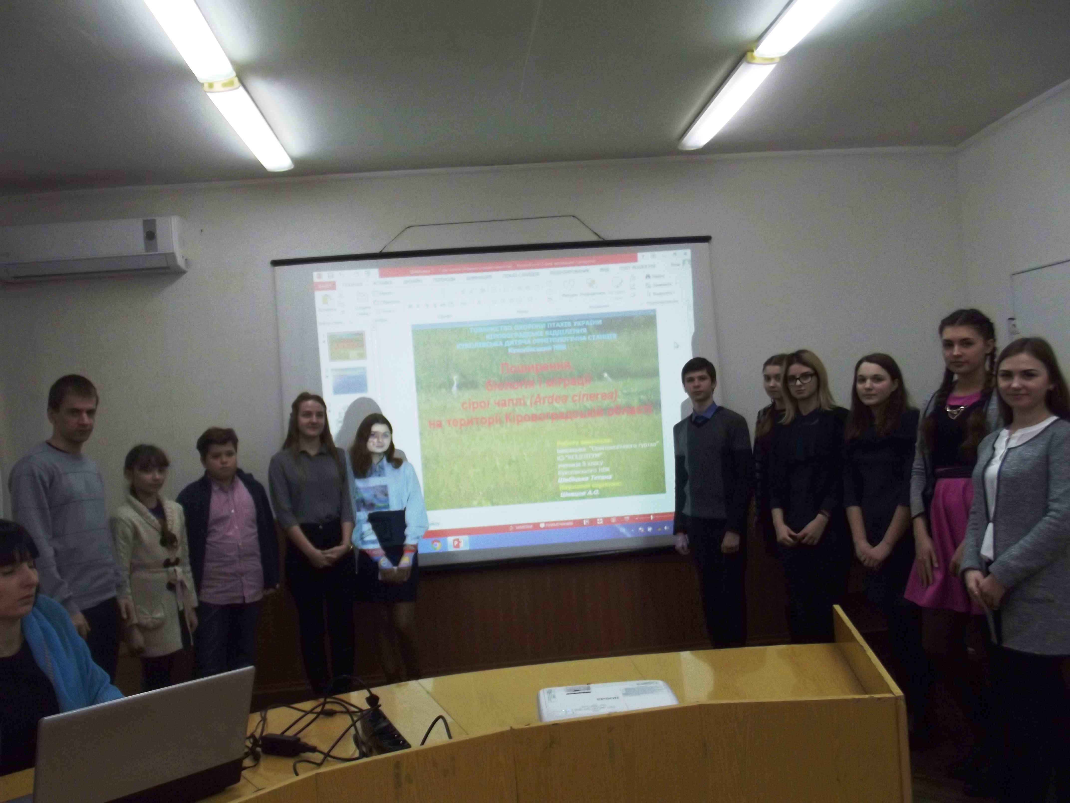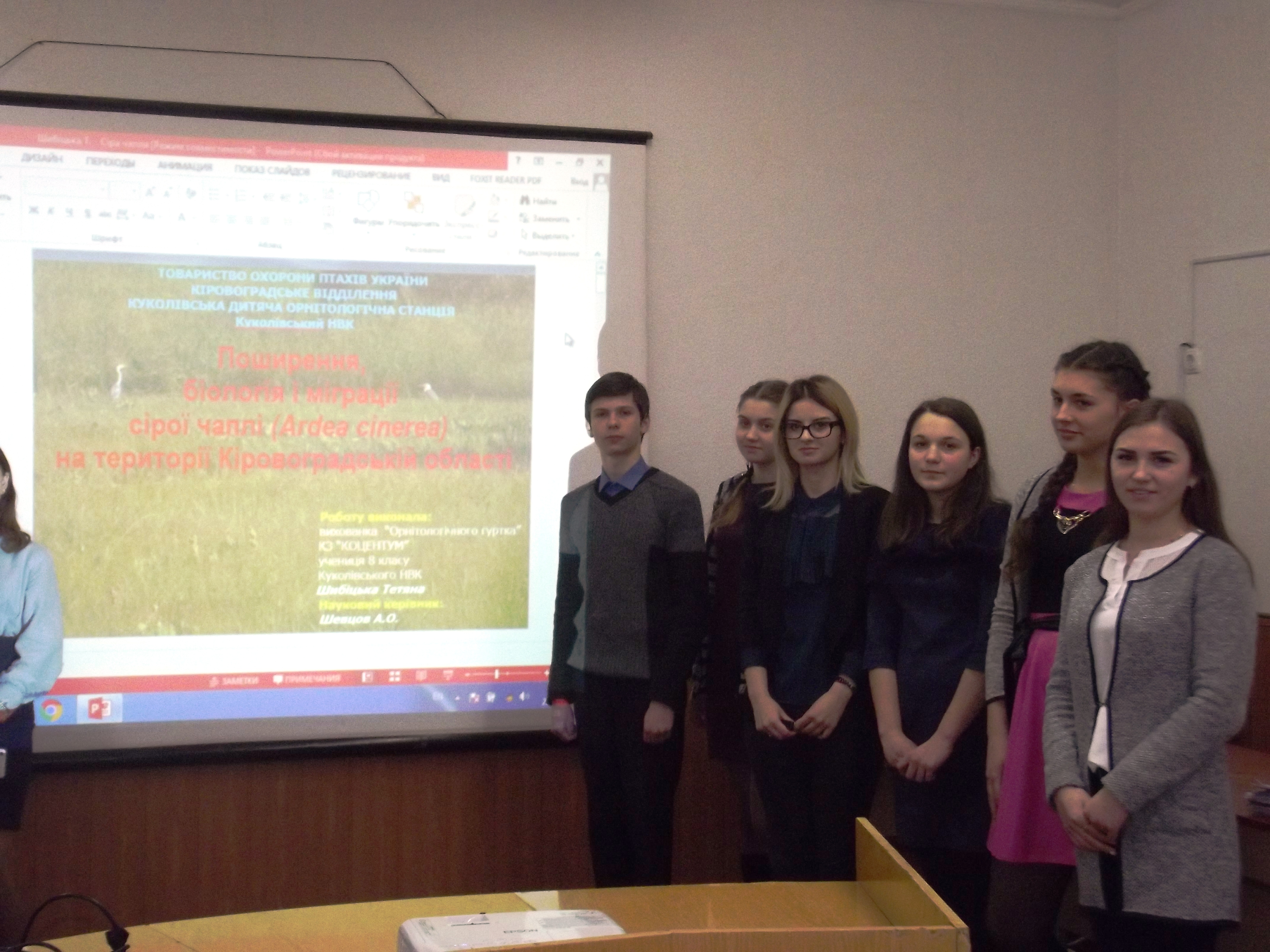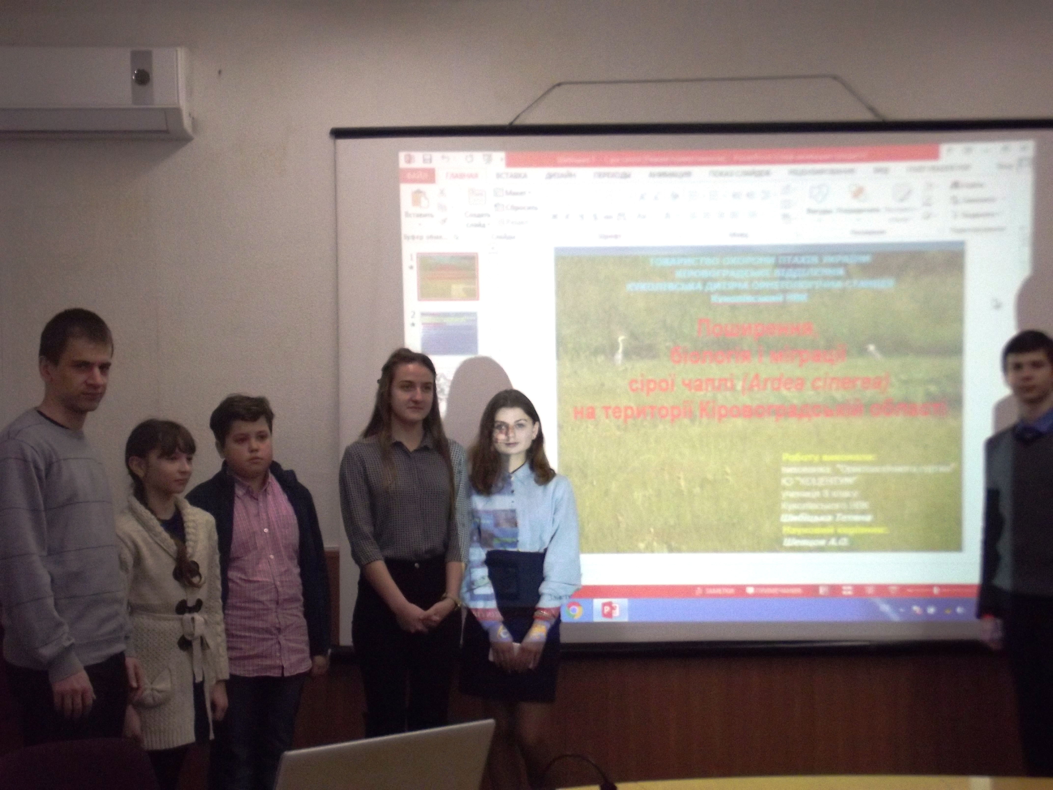Можу відразу сказати, що цей захід мені приніс купу позитивних емоцій, адже, по-перше, можна подякувати за те, що нас запросили туди. Коли ми прийшли у дитячо-юнацький центр, нам вручили дуже красиву, ілюстровану літературу про природу Кіровоградщини, яку так і хочеться погортати, дізнатись щось для себе нове, хоча я думаю що нам, як біологам вона неодмінно знадобиться в навчанні. Потім нас розподілили по групам, я була з Шумовською Софією та Сопільняком Анатолієм, і ми відправились до груп учнів, які презентували свої наукові роботи. Ми потрапили у секцію, яка називалась «Молодь за чисте довкілля». Це були переважно учні 7-10 класів. Як тільки ми зайшли у кабінет, нам видали протокол з іменами учнів та темами робіт, У протоколі були відведені колонки для оцінок, які ми могли власноруч поставити. Час з маленькими науковцями пройшов дуже швидко, адже всі мали дуже цікаві роботи, які ми слухали з захопленням. На всі «провокаційні» питання усі учасники давали впевнені відповіді, саме тому можна зробити висновок, що це було саме їх дослідження. Підбиваючи підсумки, можна сказати, що це було дуже захоплююче, адже ми побачили, який рівень знань може бути у дітей, які ще навчаються у школі. Слухаючи роботи, я думаю кожен із нас навіть дізнався щось нове про те, що нас оточує. Ми дуже вдячні, що мали можливість відвідати такий захід і неодмінно будемо раді, якщо ще буде можливість співпрацювати з Еколого-натуралістичним центром.