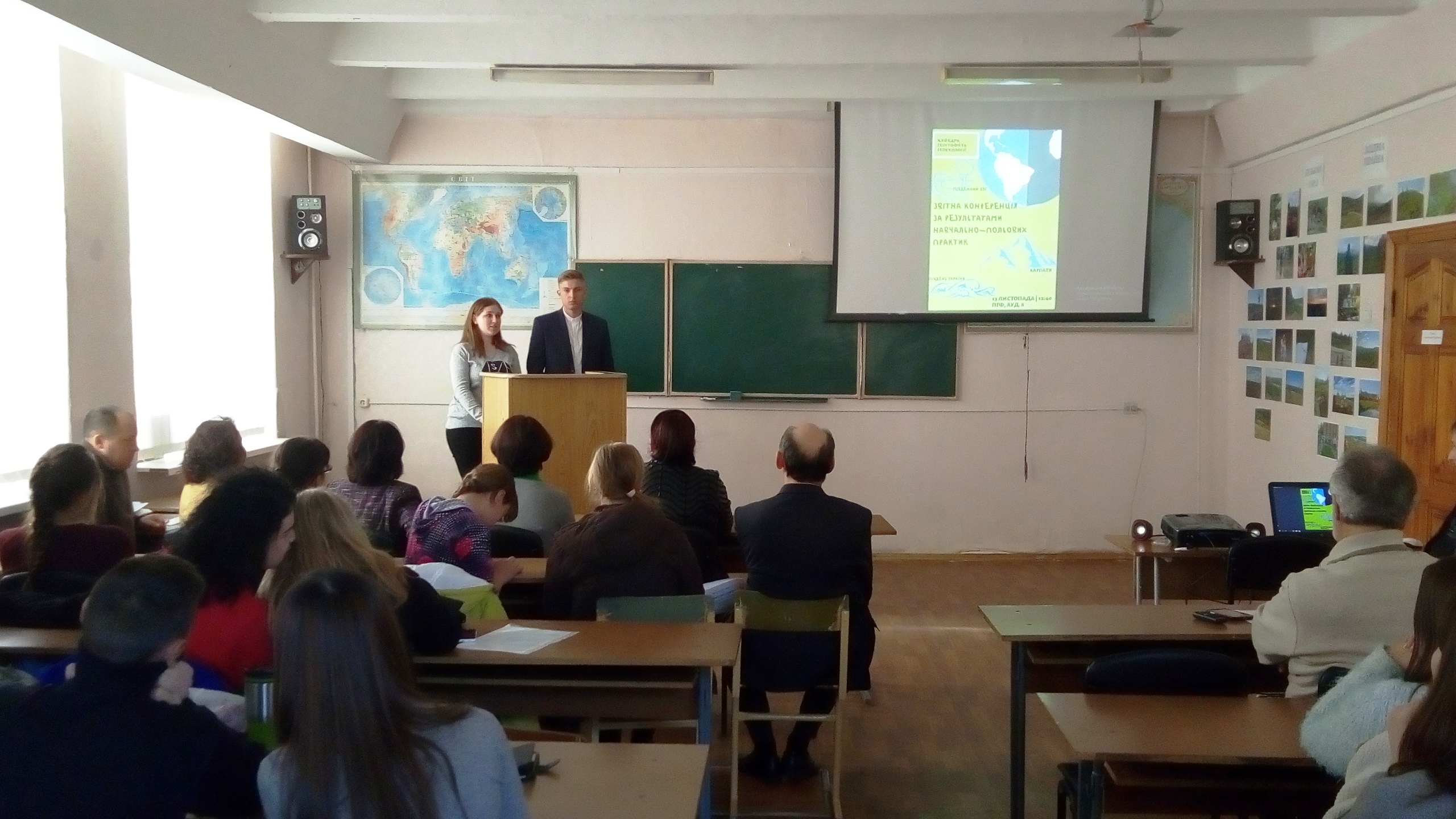 Звітні конференції для підведення підсумків сезону польових навчальних практик стали невід’ємною складовою традицій природного-географічного факультету. Ось і цього разу викладачі та студенти зібралися разом, щоб поділитися своїми досягненнями та враженнями. Керівники практик та студенти звітували про виконання завдань практик, демонстрували презентації та кліпи, оглянули міні виставку фотографій, які були зроблені в процесі проходження практик. Зі звітами-доповідями виступили студенти Потапенко Оксана та Жердієва Ірина (ІІ курс), Безверхий Іван, Берненко Аліна, Журжер Максим та Стасенко Катерина (ІІІ курс), Бискуб Юрій (IV курс) та Шмигін Каріна (студентка-магістр 1 року навчання).
