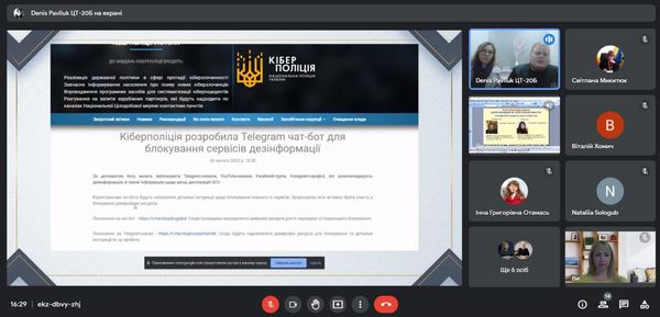 - «Співпраця студентів спеціальності 015 Професійна освіта (Цифрові технології) зі стейкхолдером ‒ Департаментом Кіберполіції України», Трифонова Олена Михайлівна, доктор педагогічних наук, доцент та Павлюк Денис Андрійович, студент факультету математики, природничих наук та технологій;