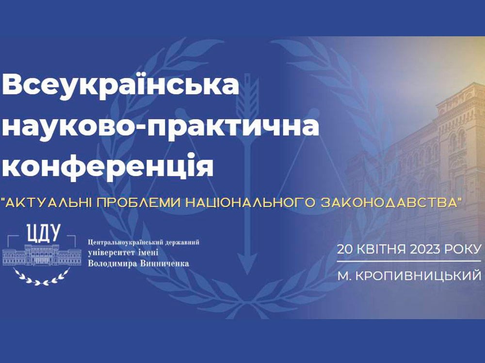 Традиційно до тижня факультету історії, бізнес-освіти та права Центральноукраїнського державного університету імені Володимира Винниченка 20 квітня 2023 року відбулася Всеукраїнська науково-практична конференція «Актуальні проблеми національного законодавства». Співорганізаторами конференції стали Національний юридичний університет імені Ярослава Мудрого, Кременчуцький національний університет імені Михайла Остроградського та Кіровоградський науково-дослідний експертно-криміналістичний центр МВС України.