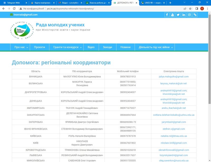 В умовах війни рада молодих вчених при МОНУ зайняла активну позицію. Зокрема, на сайті ради (http://ysc.in.ua/) створено закладку «Діяльність під час війни», де представлені регіональні координатори (http://ysc.in.ua/dopomoha-rehionalni-koordynatory/), серед яких і голова РМВ нашого університету Олена Трифонова.