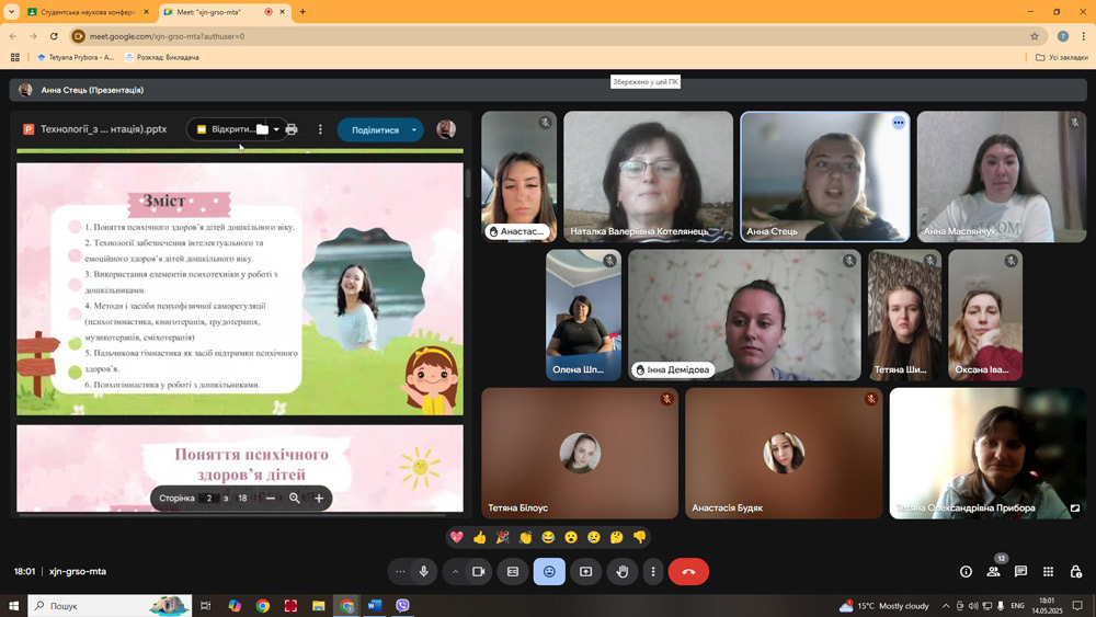 У межах проведення щорічної студентської наукової конференції в закладі вищої освіти відбулося засідання секції за спеціальністю 012 «Дошкільна освіта», яка об’єднала здобувачів четвертого першого (бакалаврського) та першого- другого курсів другого (магістерського) рівнів вищої освіти денної й заочної форм навчання, які презентували результати своїх науково-дослідних робіт, що відображають сучасні тенденції розвитку дошкільної освіти.