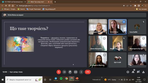 Кожного першого четверга місяця, незважаючи на всі труднощі сьогодення, відбувається засідання наукового гуртка «Інклюзивна освіта: крок за кроком» - науковий керівник кандидат педагогічних наук Долорес Завітренко. Для студентів групи СО21б (спеціальність 016.02 Спеціальна освіта), участь у роботі наукового гуртка є важливою складовою їх професійного становлення. Завдяки поглибленому розгляду актуальних проблем забезпечення інклюзивної освіти в різних закладах освіти, самостійній пошуковій роботі студенти набувають важливих для майбутньої професійної діяльності компетентностей.
