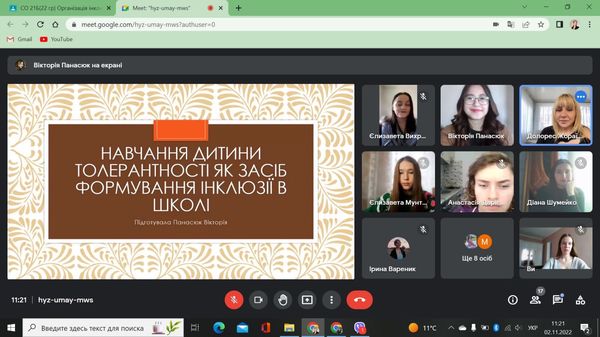 3 листопада відбулося чергове засідання наукового гуртка «Інклюзивна освіта: крок за кроком» на тему: «Особливостi формувaння iнклюзивного середовищa в освiтньому процесi». Кожна дитина – особлива, але є діти, про яких говорять «особливі» не для того, щоб підкреслити унікальність здібностей, а задля того, щоб відмітити ті особливі потреби, які відрізняють їх від інших дітей. Незалежно від стану здоров’я, наявності фізичного чи інтелектуального порушення, кожна людина має право на повноцінне життя, освіту, якість якої не відрізняється від якості освіти решти людей. Саме цей принцип є основним в організації інклюзивного навчання дітей з особливими освітніми потребами. На сучасному етапі термін «інклюзивне навчання» є новим для нашого суспільства, тому що протягом тривалого періоду існував принцип, що дітям з ООП слід навчатися в спеціалізованих закладах освіти. Вони були позбавлені можливостей отримувати освіту поруч зі своїми однолітками, сусідами, рідними з нормальним розвитком, їм відмовляли у зарахуванні до закладів загальної середньої освіти та доступі до загальноосвітньої навчальної програми. Фактично, такі діти зростали дезадаптованими до соціуму.