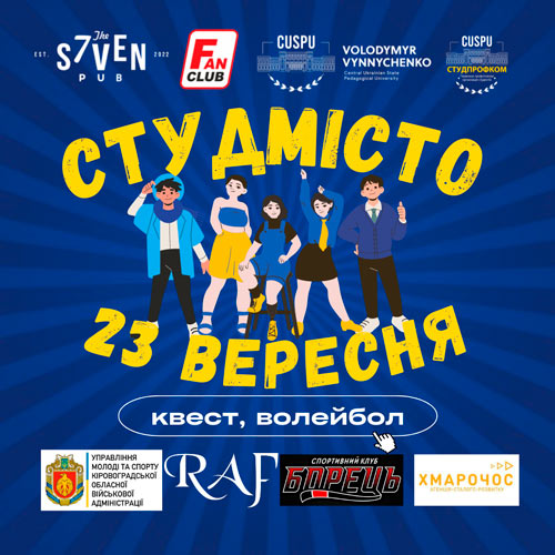 На вас очікує годинний квест- орієнтування "Step by step", змагання з волейболу, флеш-моб, виступи студентів, смачна їжа, чудові призи, гарний настрій, посмішки до вух та крутезна університетська атмосфера!