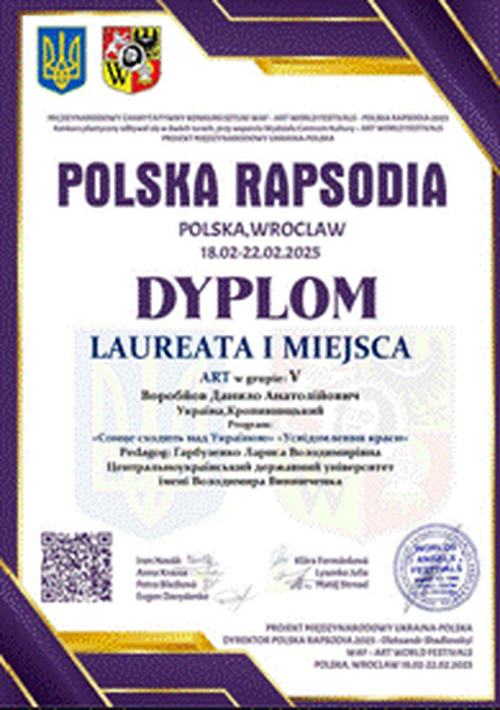 Воробйов Данило – студент факультету педагогіки, психології та мистецтв