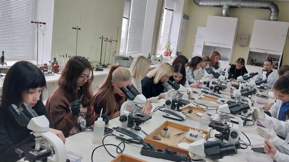 Під час захопливого заняття з біології студенти фахового коледжу «Альма-матер Плюс» відчули себе справжніми дослідниками — вони вивчали мікрофлору власної ротової порожнини. Лабораторну роботу проводила доцент кафедри природничих наук та методик викладання, кандидат біологічних наук Марія Боброва.
