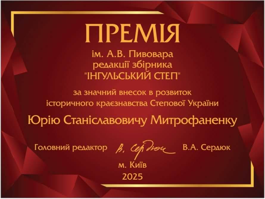 Вітаємо доцента кафедри історії України та всесвітньої історії, доктора історичних наук Юрія Митрофаненка із відзнакою – Премією імені А.В. Пивовара.