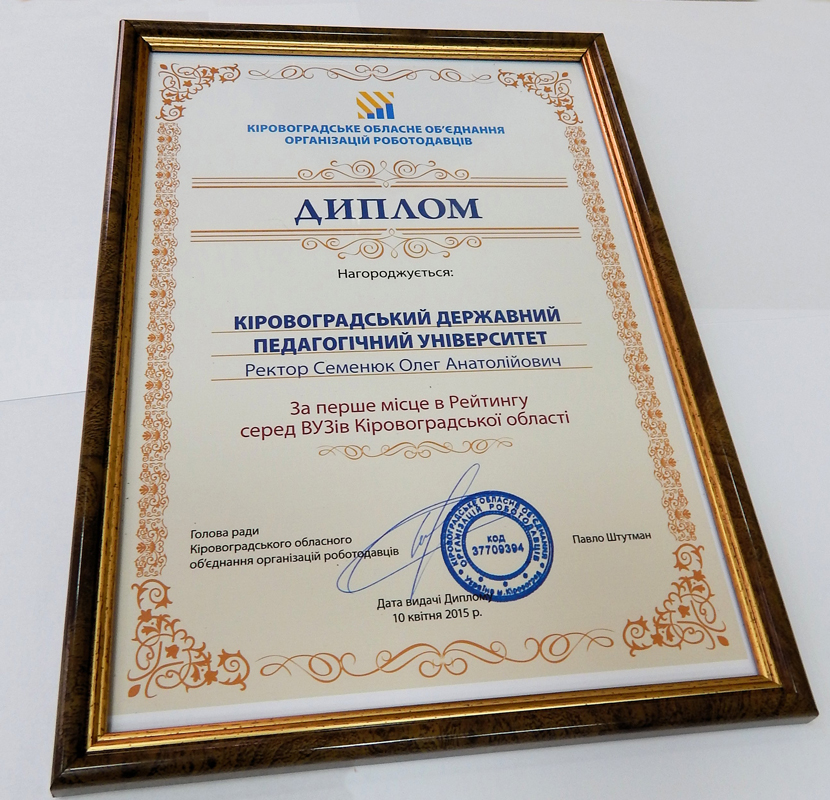 10 квітня в Кіровограді було підведено підсумки рейтингу вищих навчальних закладів, що укладався Обласним об’єднанням організацій роботодавців.