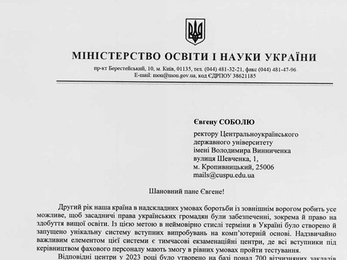 Ректора ЦДУ ім. В. Винниченка Євгена Соболя, доктора юридичних наук, професора та колектив навчального закладу відзначено подякою Міністерства освіти і науки України за «сили якісно реалізовувати щоденні надскладні завдання функціювання системи освіти під час війни, створюючи передумови для щасливого майбутнього нашої держави».