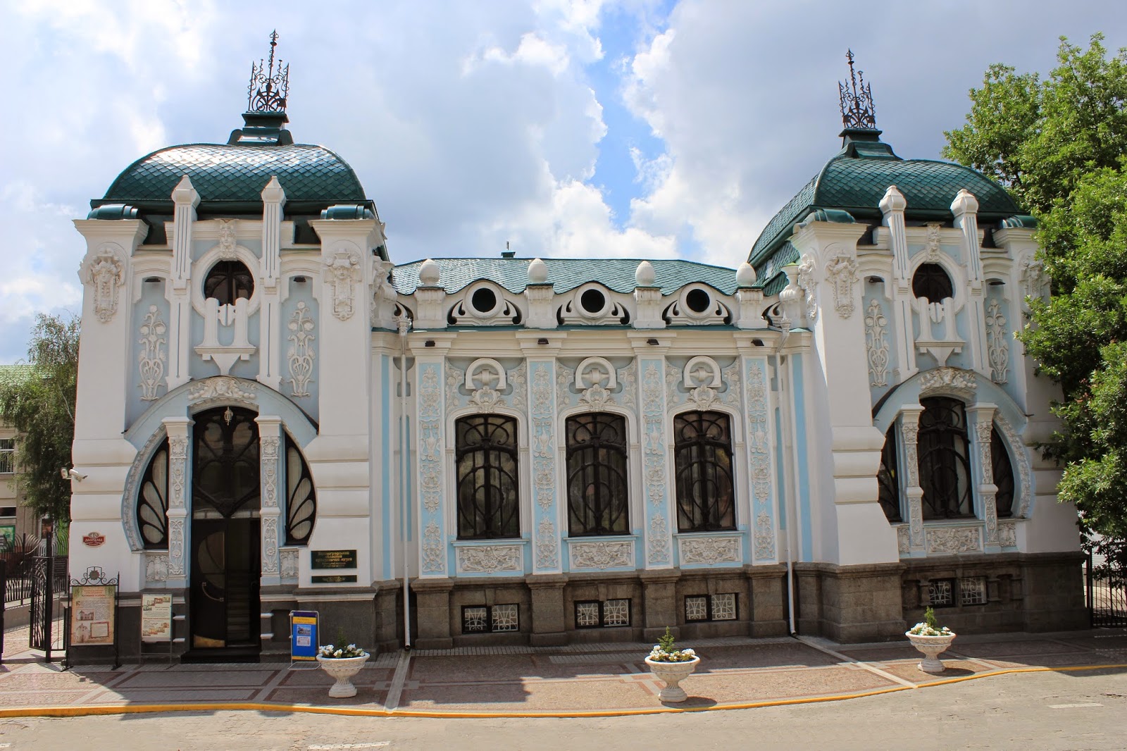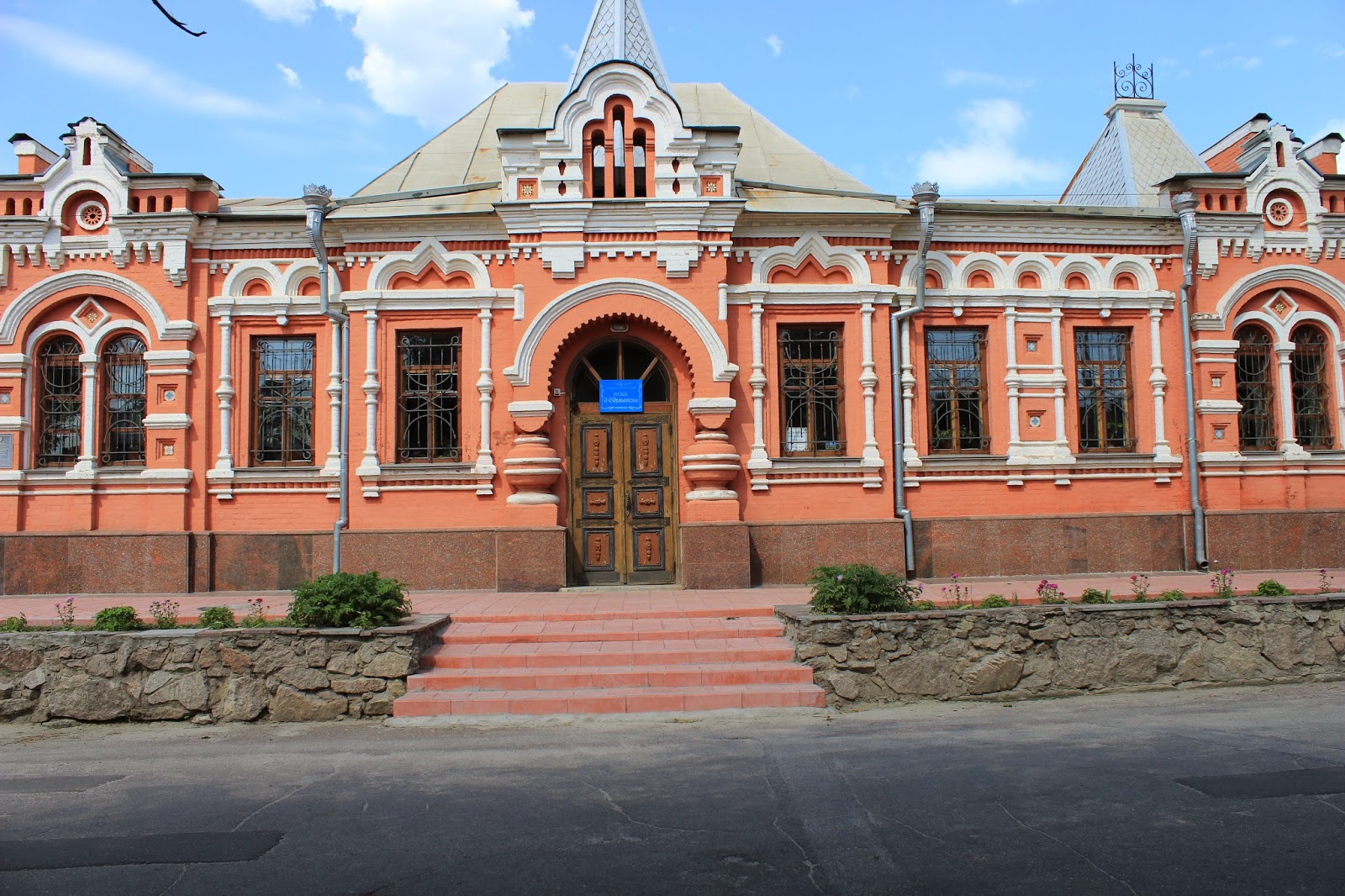 Свою екскурсію ми почали від художньо-меморіального музею імені О.О.Осмеркина, який стоїть на куті вулиць Дворцової і Кропивницької. Архітектором цієї краси був талановитий архітектор Яків Паученко. Саме він спроектував надзвичайно неймовірні будівлі, які тішать око не тільки жителів міста, а й гостей та туристів.