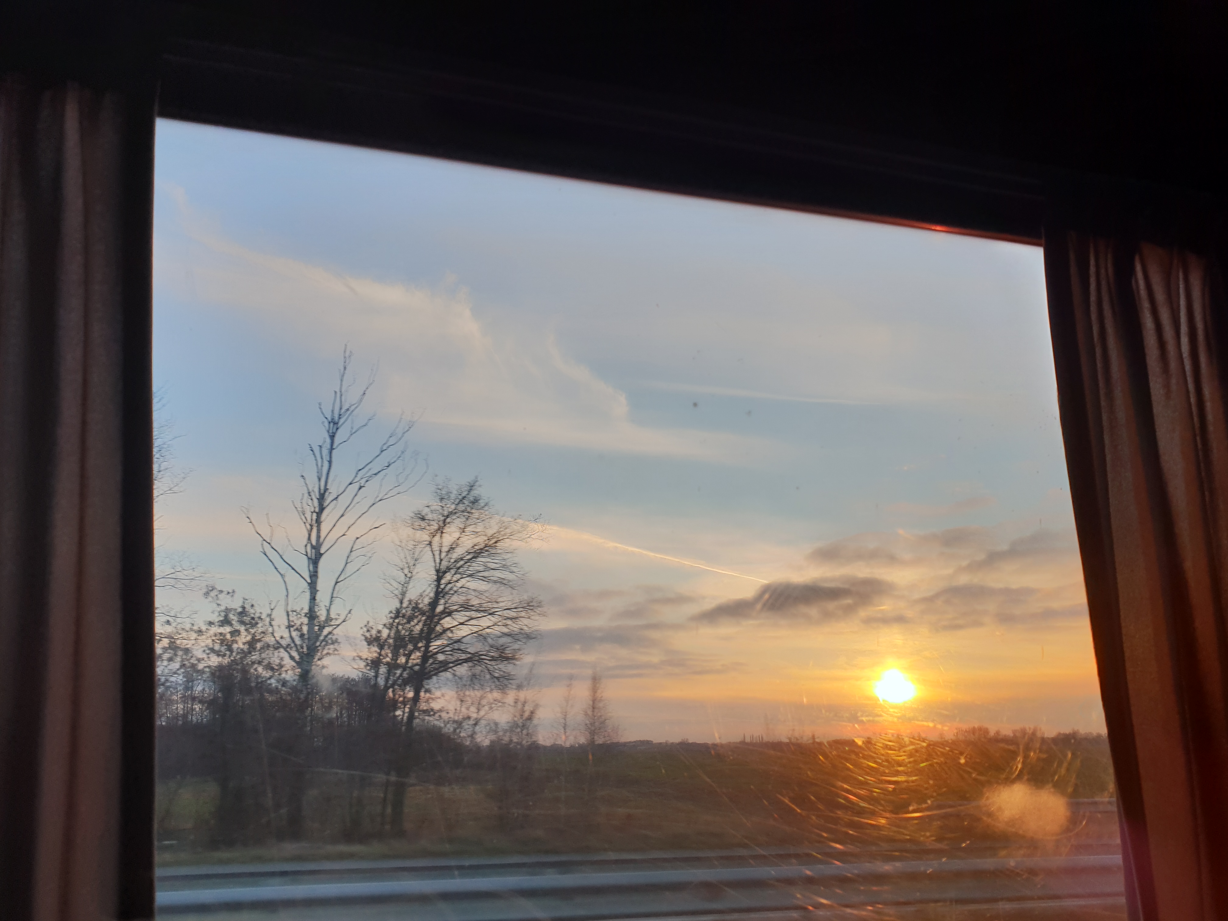 Небо набуває відтінок червоного сухого. А думки не встигають за швидкістю машини і губляться десь дорогою. Вже майже доба без сну, але у теплій дрімоті. Аж ранок таки наступає.