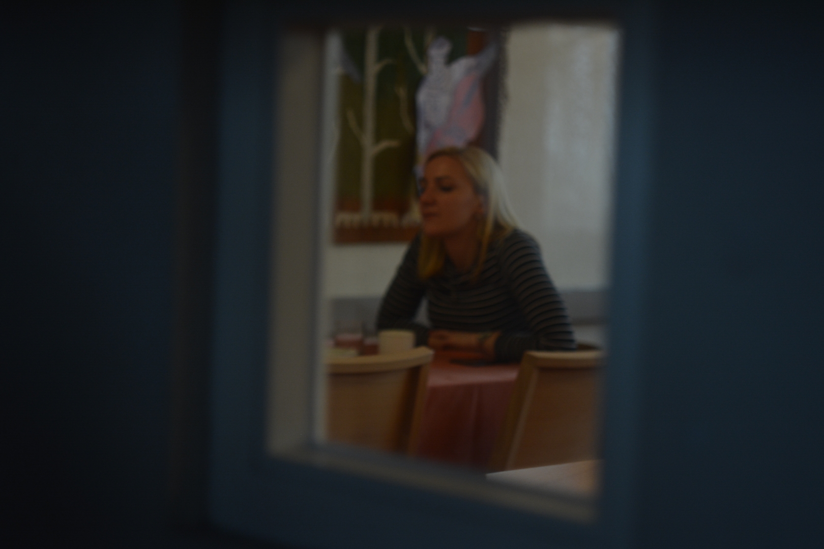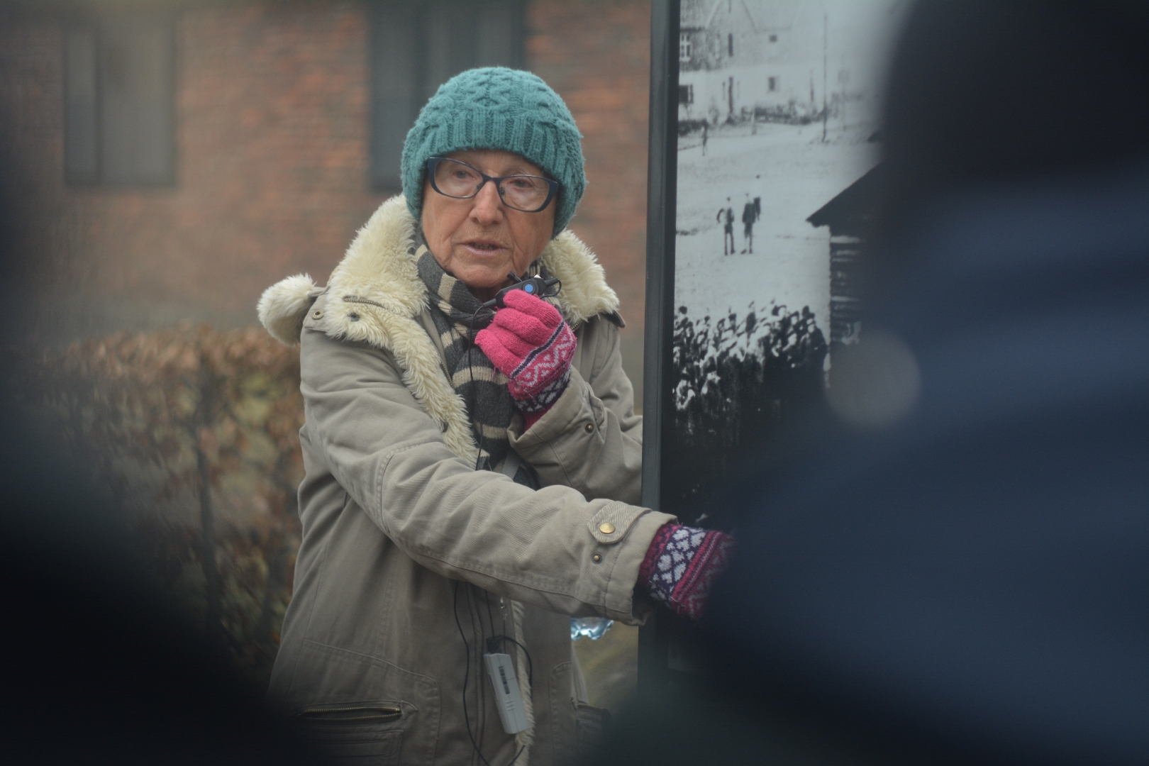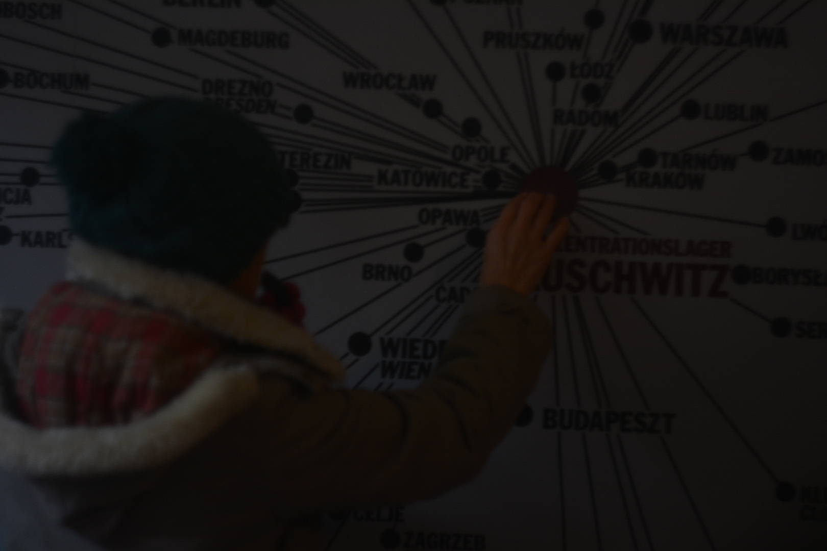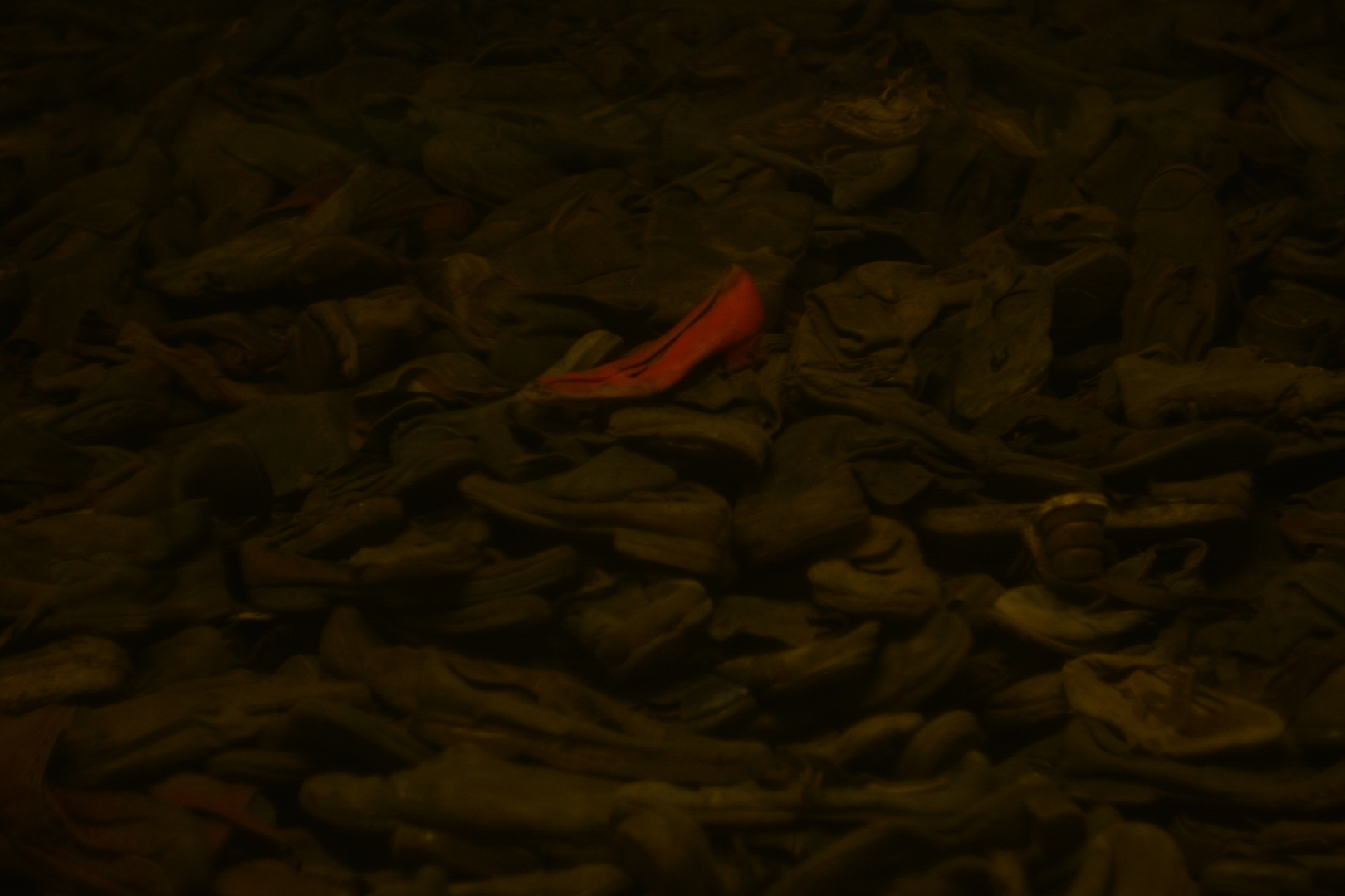 Піднімаймося протоптаними сходами одної з будівель, які схожі на кам'яні хвилі солоного моря. Кажуть, не можна фотографувати, та і не будемо. Віконне скло кольору марганцовки, а світло - лимонного соку. Це перукарня диявола: коси винищених дівчат зістрижені та звалені у купи як матеріал для простих шкарпеток, що коштували людського життя. Не треба там коми перед як. Стоїть важка тиша.