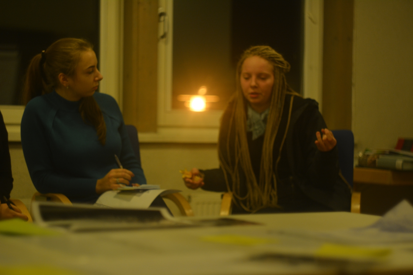 Сьогодні писали свої імена на кольорових листочках для легшого їх запам'ятовування учасниками конференції під час знайомства. Я обрала свій улюблений - колір горобини. А увечері за вікном таке ж світло вуличного ліхтаря розривало нічний простір…