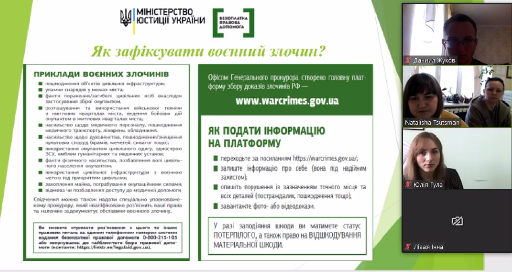 5 травня студенти-консультанти юридичної клініки «Artium de Lex» взяли участь у онлайн-семінарі на тему «Права та гарантії внутрішньопереміщених осіб», організованому Кропивницьким місцевим центром з надання безоплатної вторинної правової допомоги.
