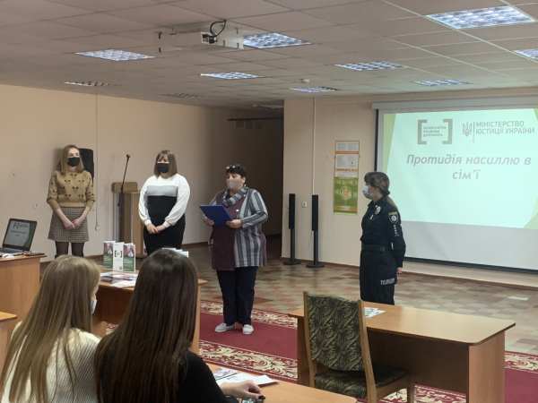 У рамках соціальної акції «16 днів проти насильства» фахівці Кропивницького місцевого центру з надання БВПД Юлія Гула та Наталія Цуцман спільно з начальником відділу зв’язків з громадкістю управління патрульної поліції в Кіровоградській області Оксаною Білобровою на базі Обласної універсальної наукової бібліотеки ім. Д.Чижевського провели інформаційну годину «Протидія насиллю в сім’ї» для студентів першого курсу Центральноукраїнського державного педагогічного університету ім. В.Винниченка.